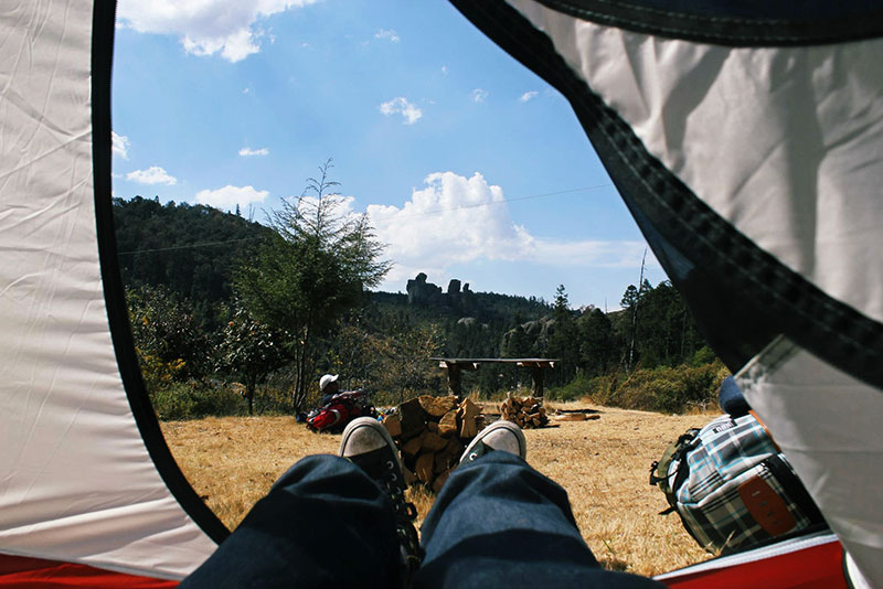 Loay hoay nhóm lửa nướng bánh mì và gà nướng (mua sẵn dưới Pachuca) ăn trưa no nê xong, 4 thằng chui vào lều nghỉ lấy sức chuẩn bị leo đến đỉnh Peña del Cuervo (bọn tôi cắm trại ngay dưới chân núi này), ngắm cảnh trời đất và hoàng hôn thì cực kì đẹp nhưng đường lên và xuống thì cực kì khó khăn! Đơn giản vì ngắm xong hoàng hôn, chặng đường xuống núi sẽ không có một ánh điện nào hết.