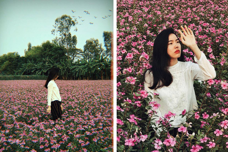 Nếu chưa chọn được dịp nào dài dài đến Đà Lạt để check-in cánh đồng Lavender, vậy thì phóng xe nhanh đến An Giang sát vách Sài Gòn chụp với hoa dừa cạn trước đi. Những thửa hoa nở rộ có màu tím hồng, đẹp chẳng khác nào như tranh vẽ.