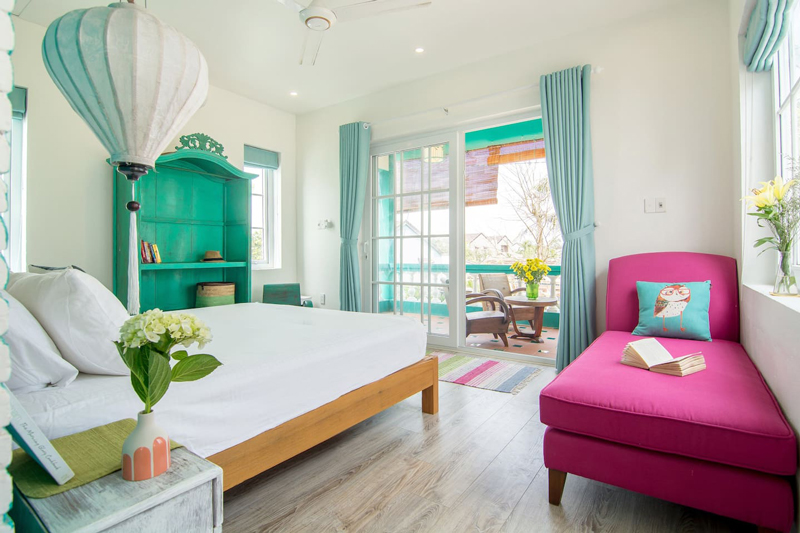 Để tận hưởng trọn vẹn, bạn nhớ là chọn phòng trên lầu nhé, trên này có ban công. Sáng thì ngắm bình minh, chiều thì thư thả uống trà ngắm Hội An về tối. Tuyệt lắm phải không.