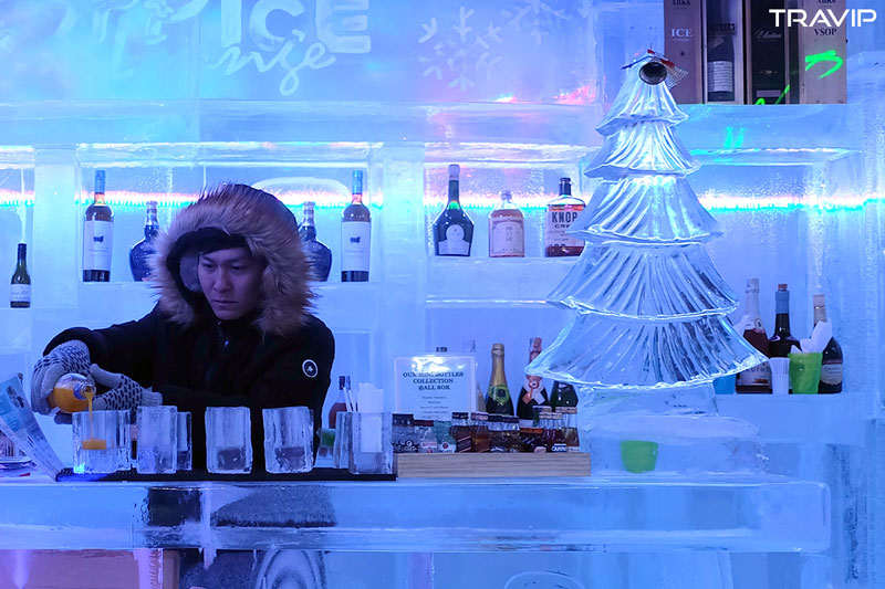Thường thì trước khi vào HP Ice Lounge, nhân viên sẽ phát cho bạn áo lông, mũ trùm và găng tay để đảm bảo bạn không chị chết cóng dưới cái lạnh âm độ.